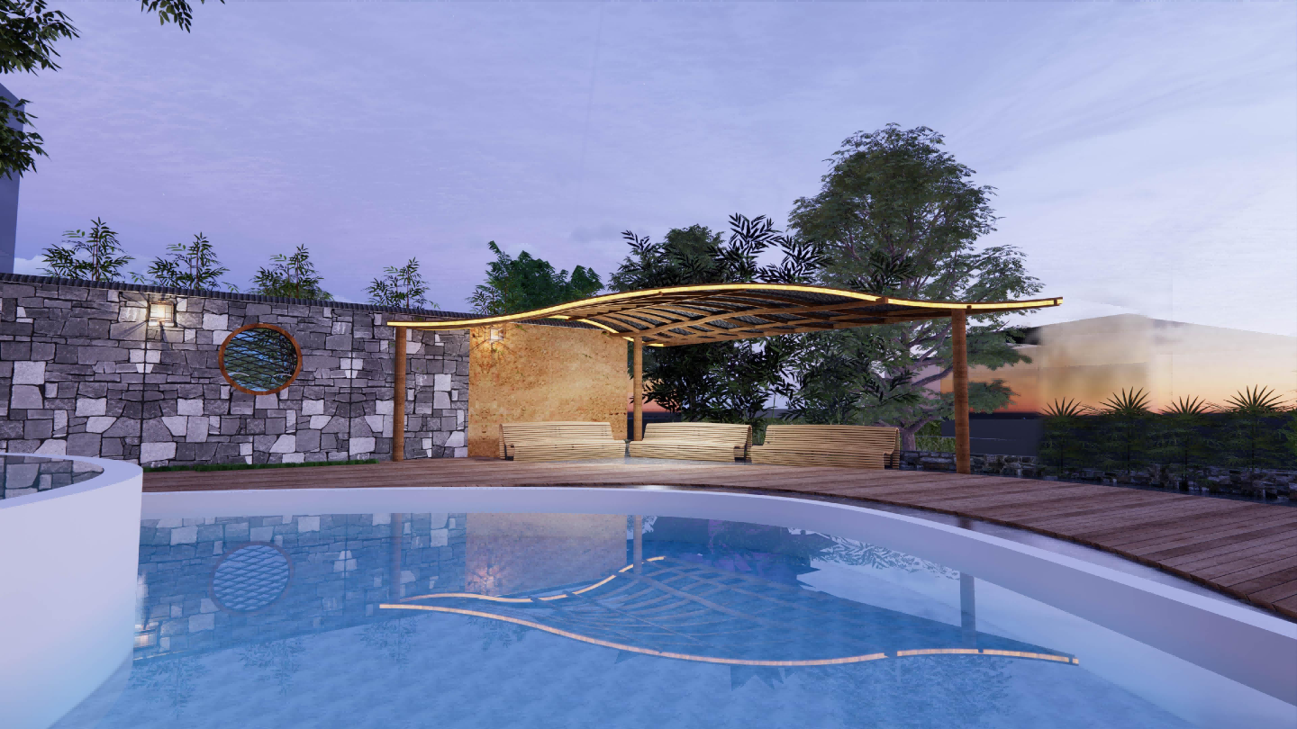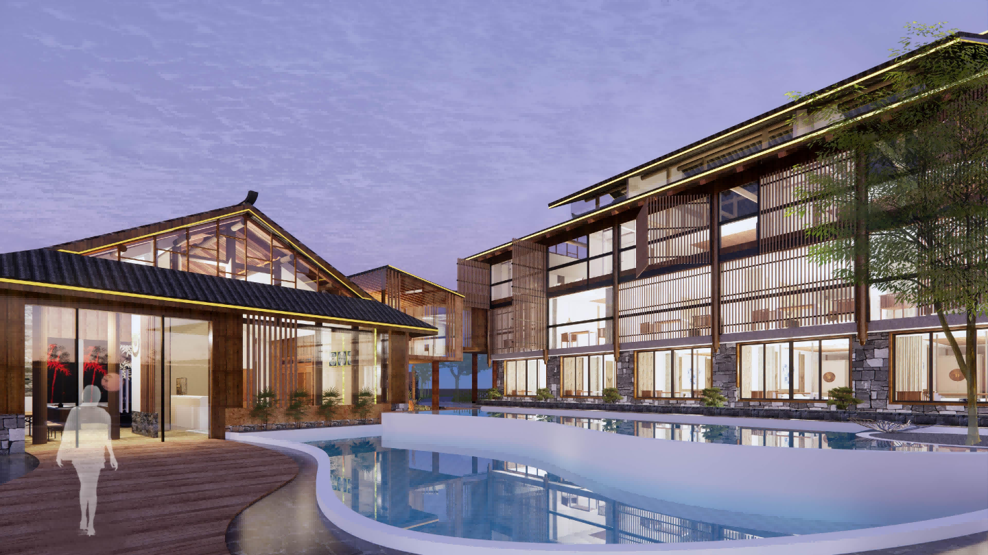 设计借鉴龙胜当地中国少数民族中的苗族文化元素,进行用分离与新元素组合的形式传承,结合山地环境营造出隐没山林的世外意象,让游客体验到龙胜梯田的神秘与优美并沉醉于当地民族风俗